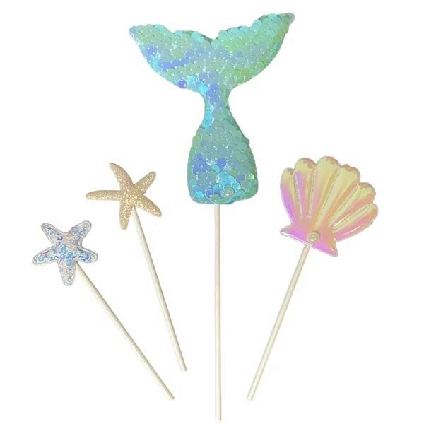 Décoration de gâteau Queue de sirène bleue avec coquillages et étoiles de mer (4 pièces)