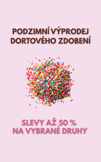 Ozdoby vyrobené z cukru jako je máček, perličky, srdíčka, ale také cereální čokoládové kuličky atd.