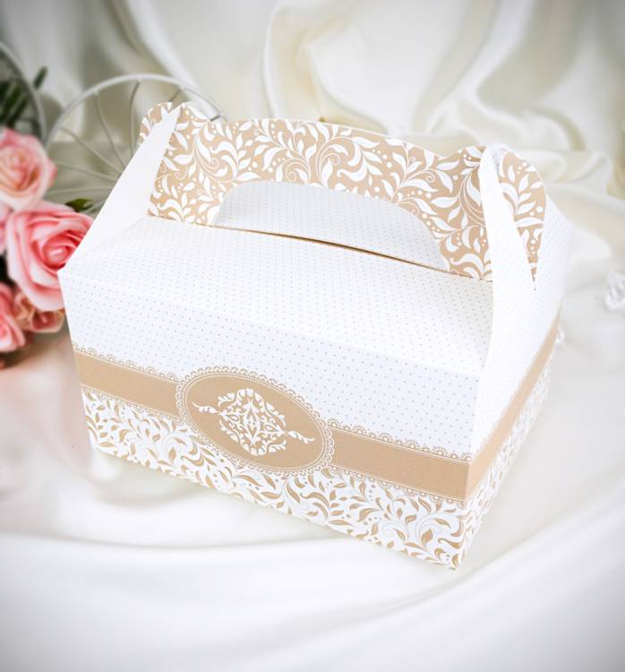 Krabička na zákusky s béžovým vzorom (18,5 x 13,5 x 9,5 cm)